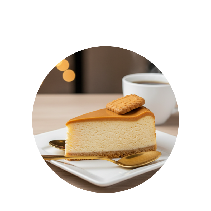 Experience the viral sensation with our Lotus Biscoff Caramel Cheesecake. It features a flavorful, spiced crust made entirely from crushed Lotus Biscoff cookies, layered with a silky-smooth cream cheese filling infused with melted Biscoff spread.