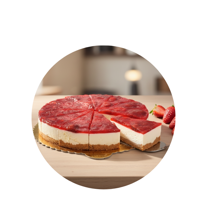 Our Strawberry Cheesecake begins with a buttery, house-made graham cracker crust, forming the perfect bed for a rich, velvety New York-style cream cheese filling. It is then generously crowned with a vibrant, glossy topping of fresh, hand-sliced strawberries.